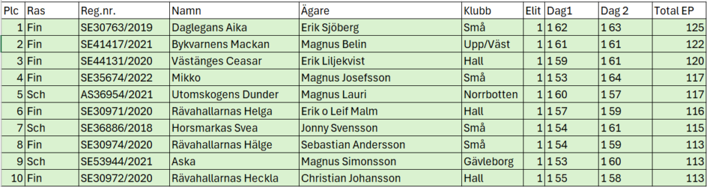 Prislista / Slutresultat Räv SM 2026